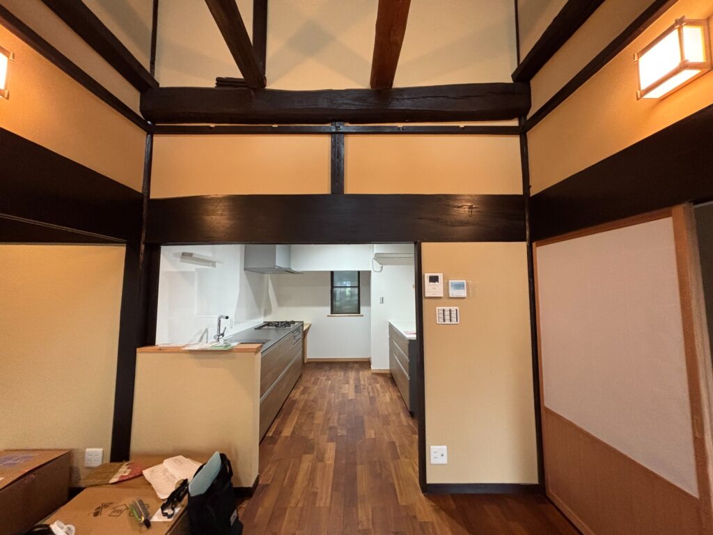 リビングの様子です。元々は畳の続き間だった部屋をフローリングにし、ダイニングと連続した空間となっております。