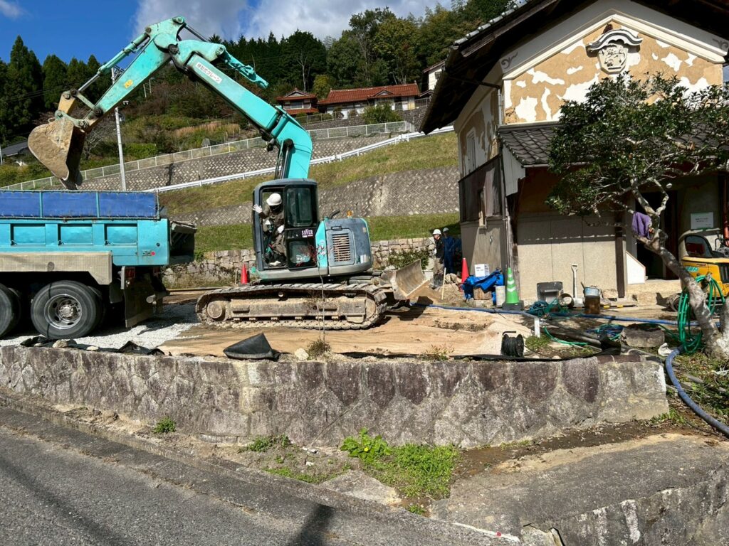蔵の横に新規で浄化槽設置をするため、まずは土を掘削するところからスタートです。