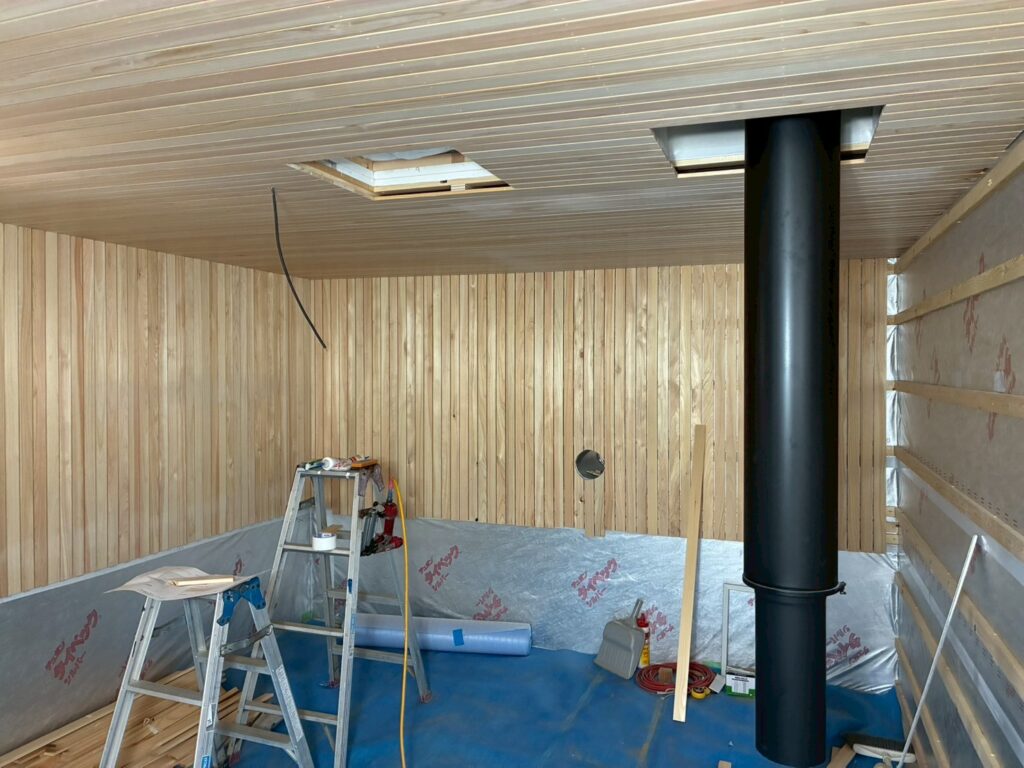 2025年11月25日今週の進捗ですが、蔵のサウナの仕上げ作業の様子をお伝えします。