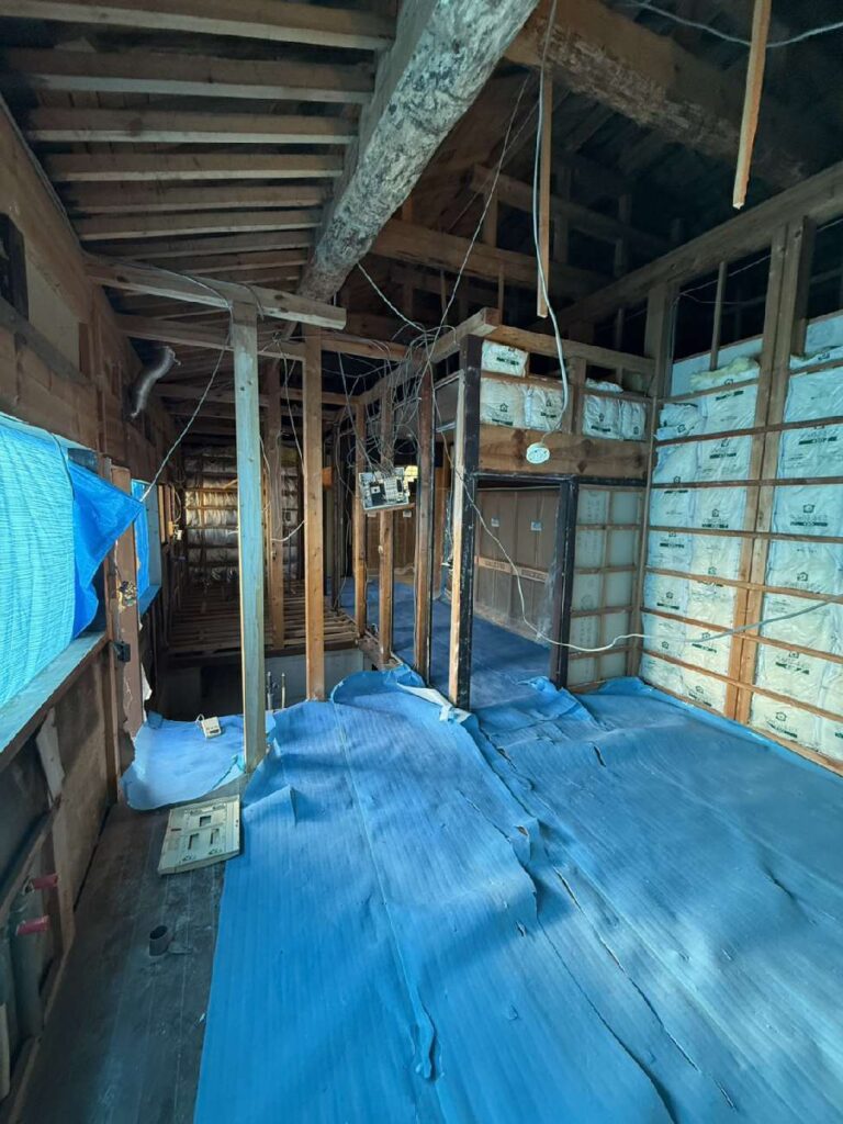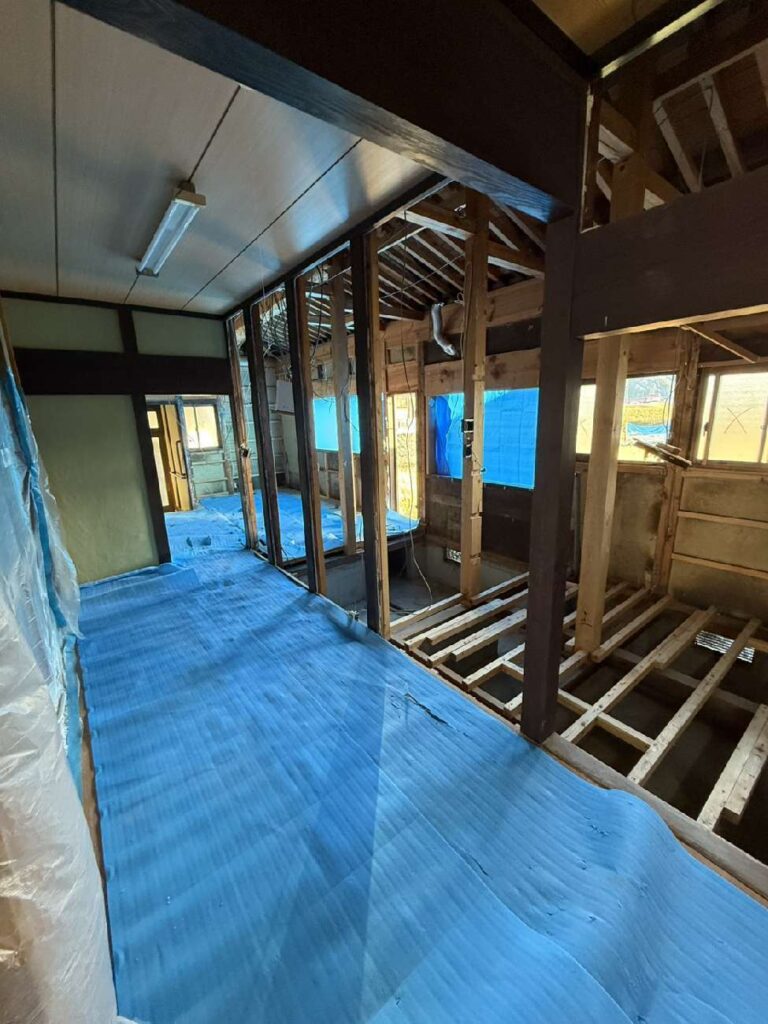 解体後の様子です。今回はこのダイニング空間を傾斜天井にするので、