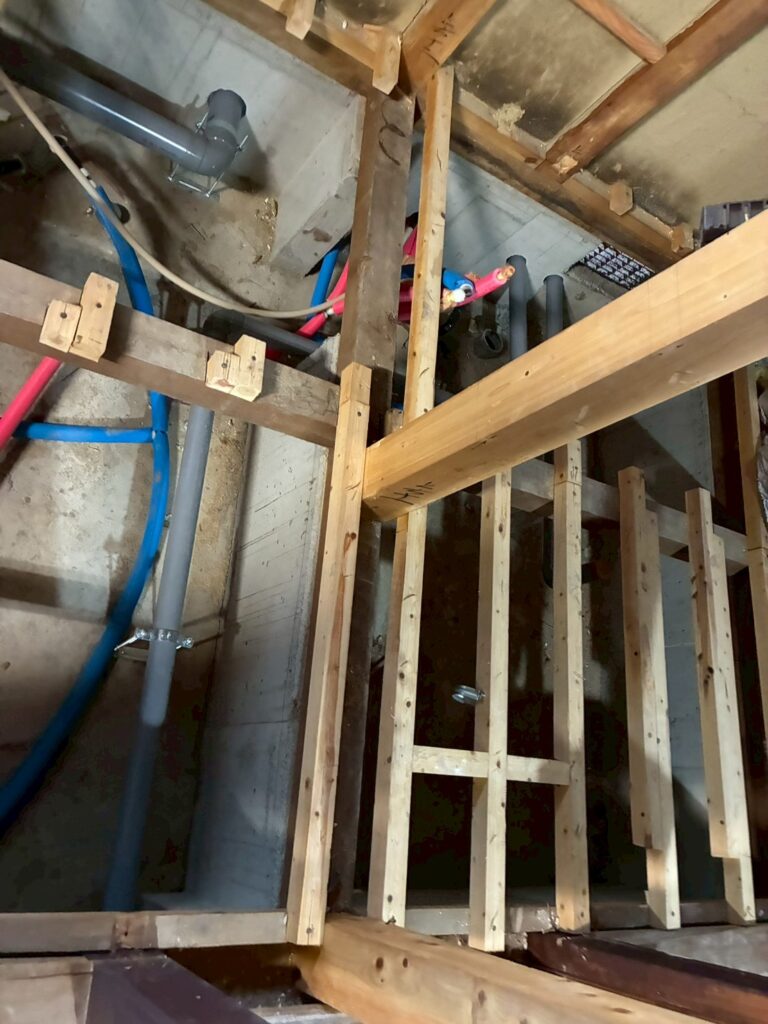 解体検査時に、UBを設置する予定の箇所に柱があることが発覚し、このままではUBが設置できないので、大工さんと打ち合わせをし、柱を移動補強することにしました。解体検査は予定していたプランでできるかどうか改めて確認する場でもあります!