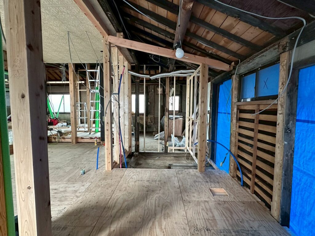 古民家は断熱性能が低いので、改装工事を行う際は、断熱材を必ず入れています。