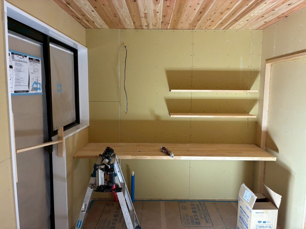 その他も左官工事のパテ処理やモルタル下地処理、枠廻りの木部塗装などを進め、来週はクロス工事も含め、一気に仕上げを行いますので、更新をお楽しみください!