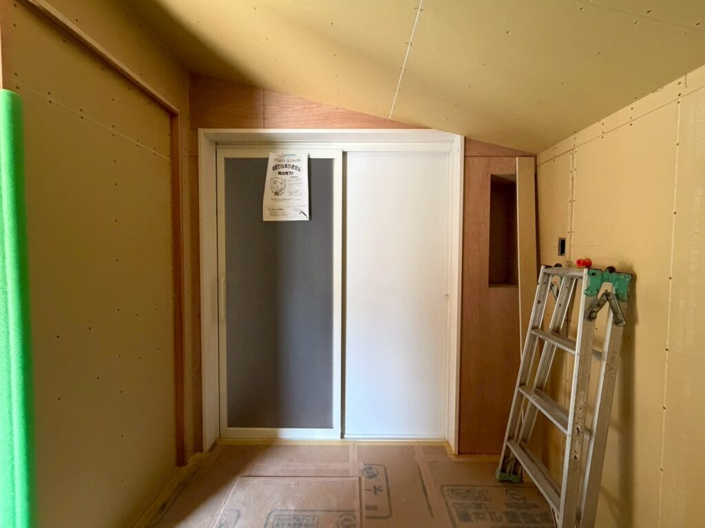 出入口にまだ扉がついていないので、大工さんが防犯のための扉を作ってくださいました。