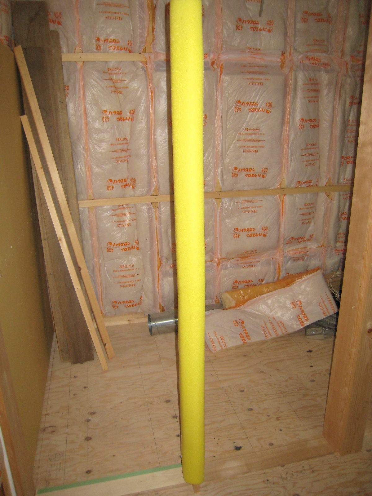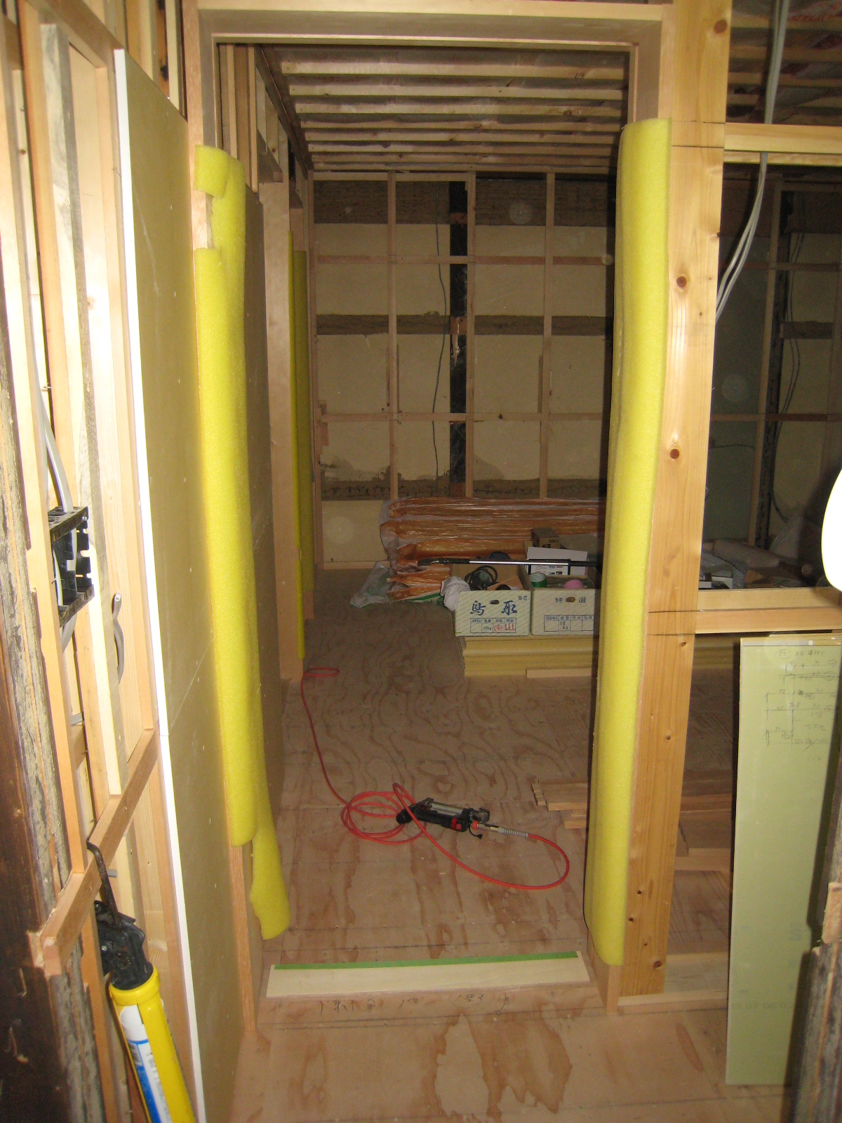 引き続き、外部に面する壁にもグラスウールを入れ始めています。