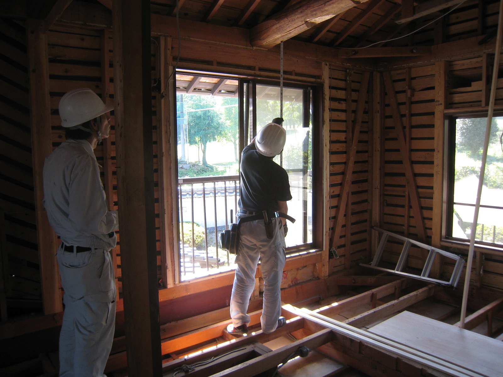 作業途中の確認作業。計画通りに出来上がっているかを何度も確認し、間違いがないように確認し合うことは重要です。