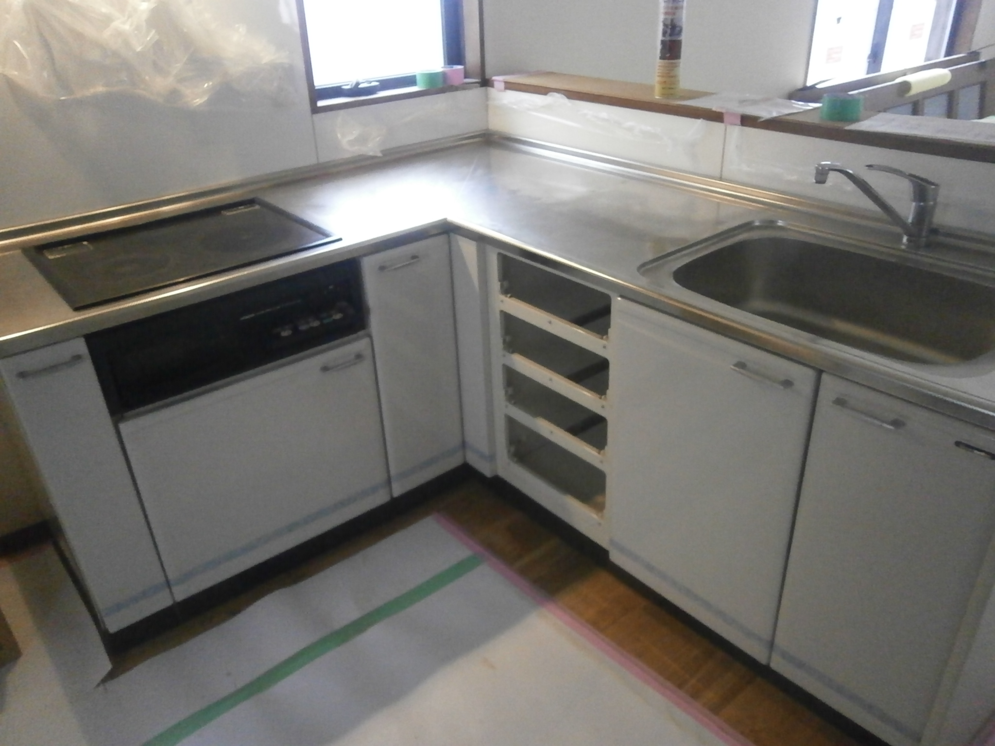 キッチンが再生されました。施主様も、場所が変わっただけでとても新鮮との感想を頂きました。