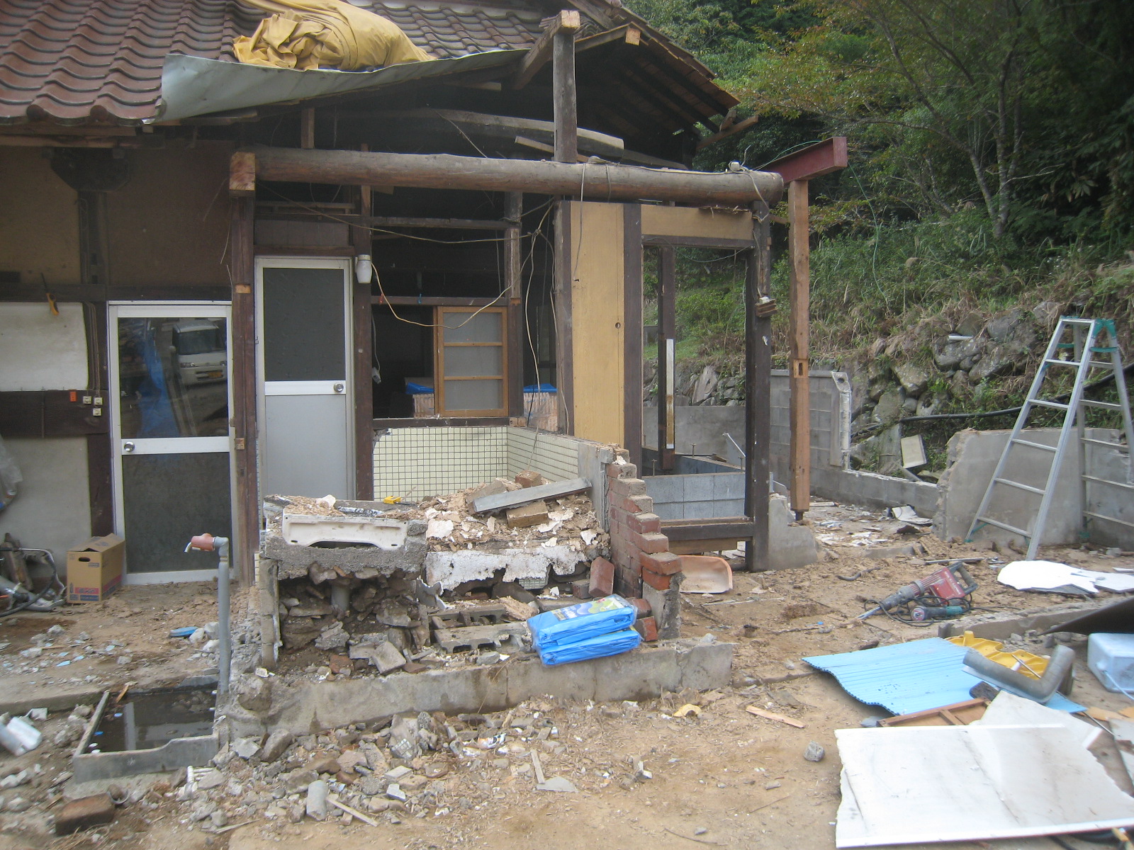 今回屋根を葺いている箇所は、着工時にはお風呂や台所がありました。