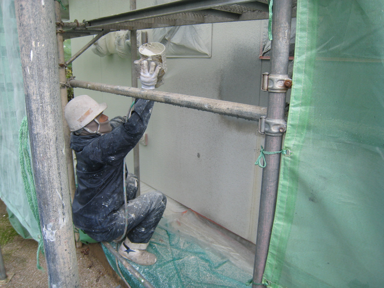 広島市佐伯区のH様邸は、外壁のリシン吹付けの作業を行いました。