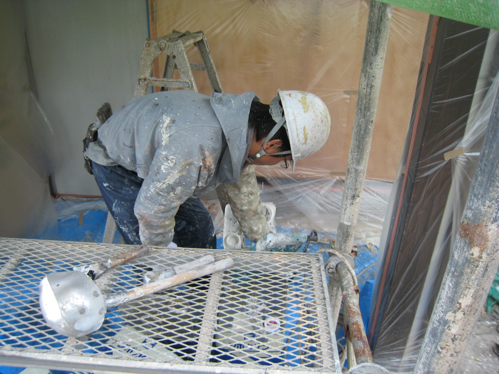 先日、水洗いで凍えていた職人さんが今日も頑張って作業をしてくれています。