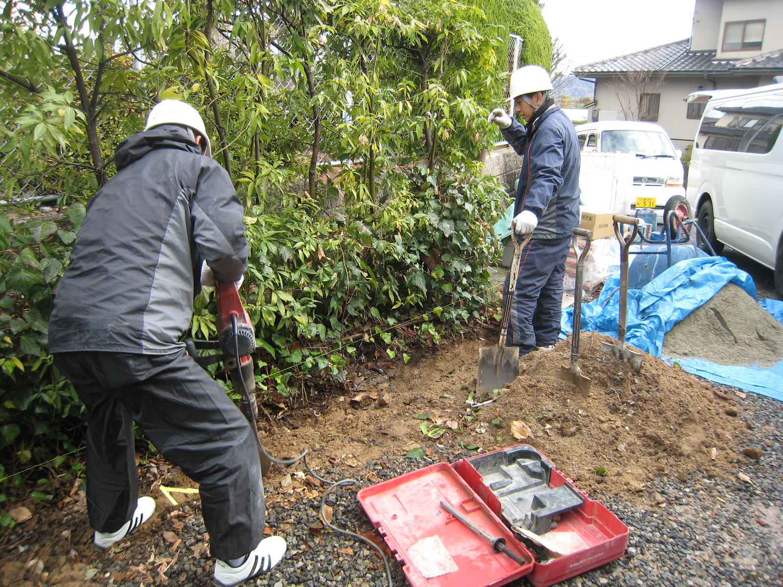 外壁と合わせて、今日は外構工事の一部にも着手しました。