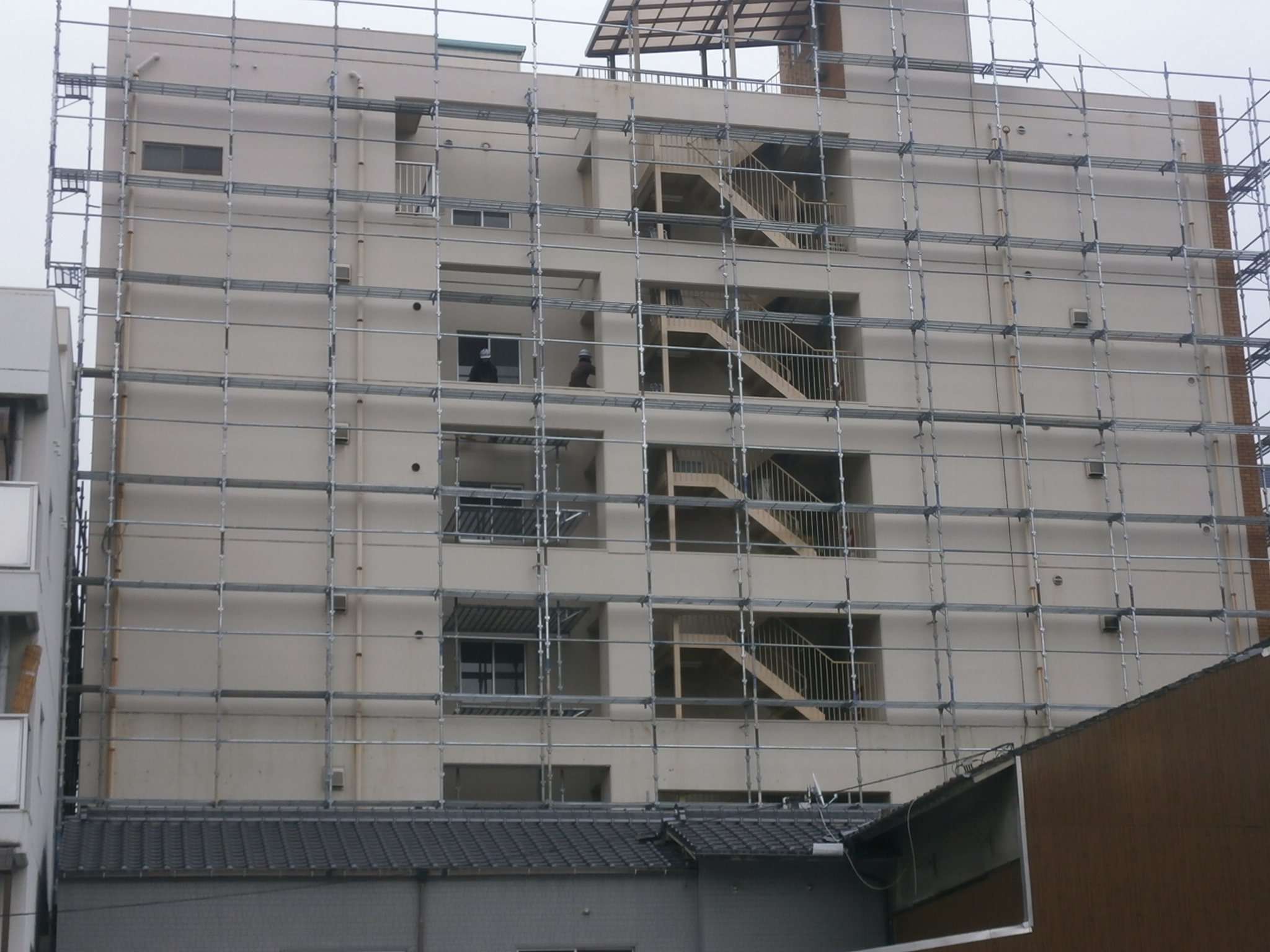 東西南北全ての面の足場組立完了後危険個所等確認後、調査に着手します。