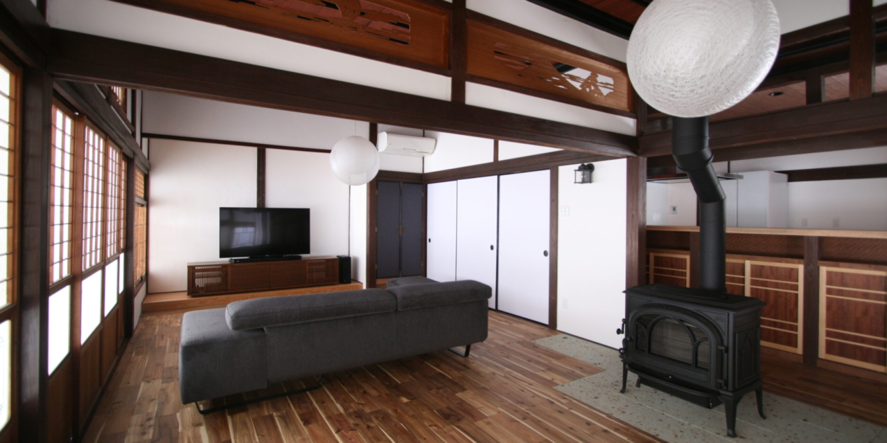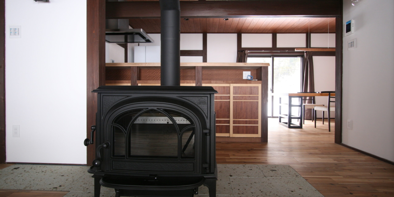 薪ストーブを玄関土間からの部屋の真中にレイアウトした時は驚かれましたが、