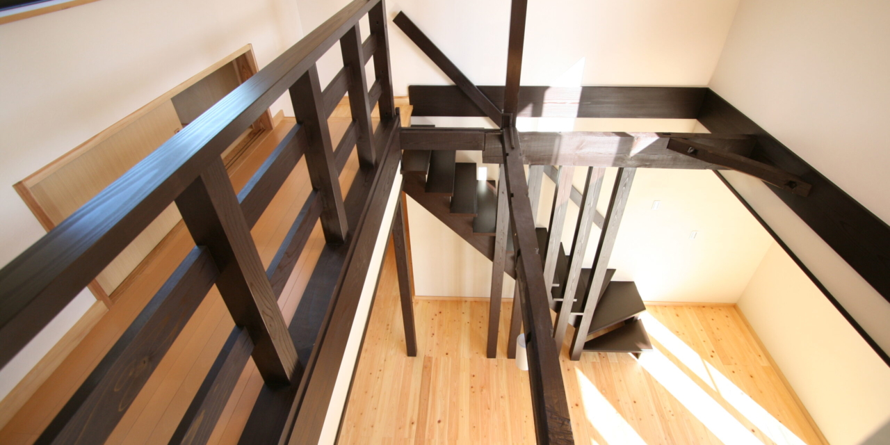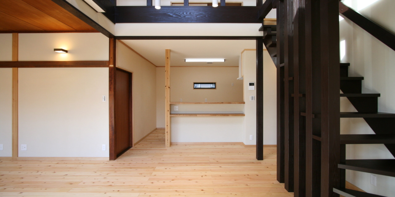 中廊下と階段をLDKに取り込み、その上部の部屋の床を抜き、吹き抜け空間とすることで広々とした印象の住まいになりました。