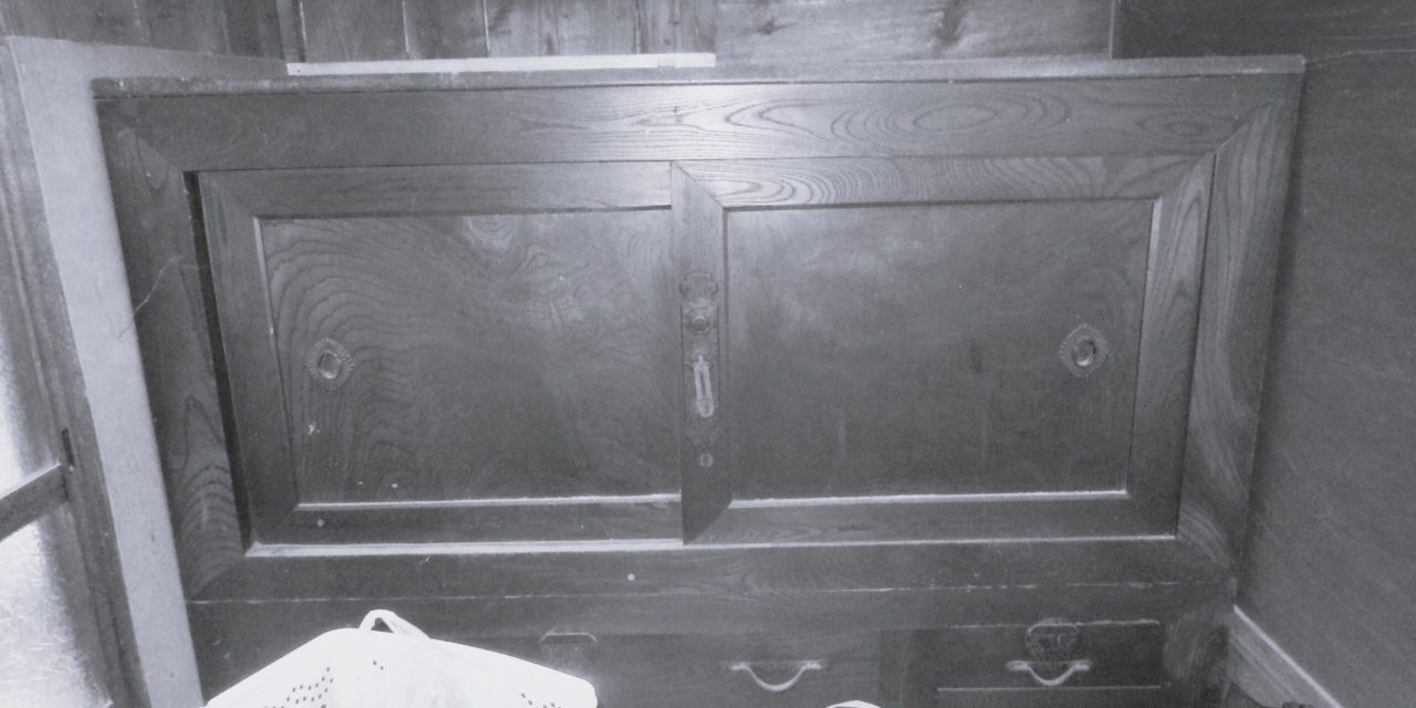 蔵に眠っていた収納家具の扉に使用されている欅が美しく、