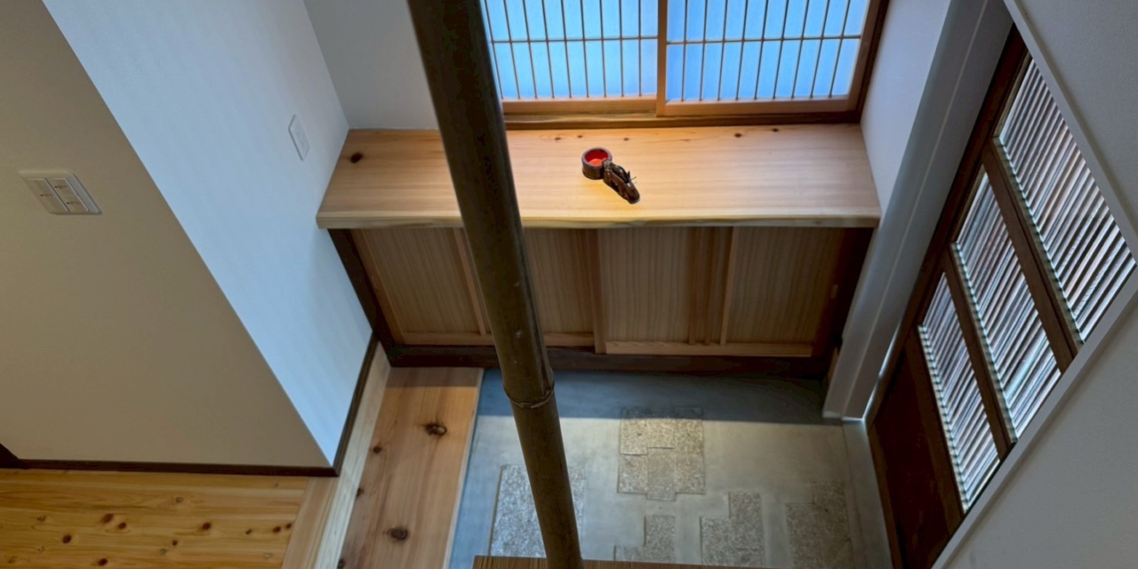 元の事務所で採用していた蔵戸が印象的だったので、これを生かすべく蔵をモチーフにデザインしている。