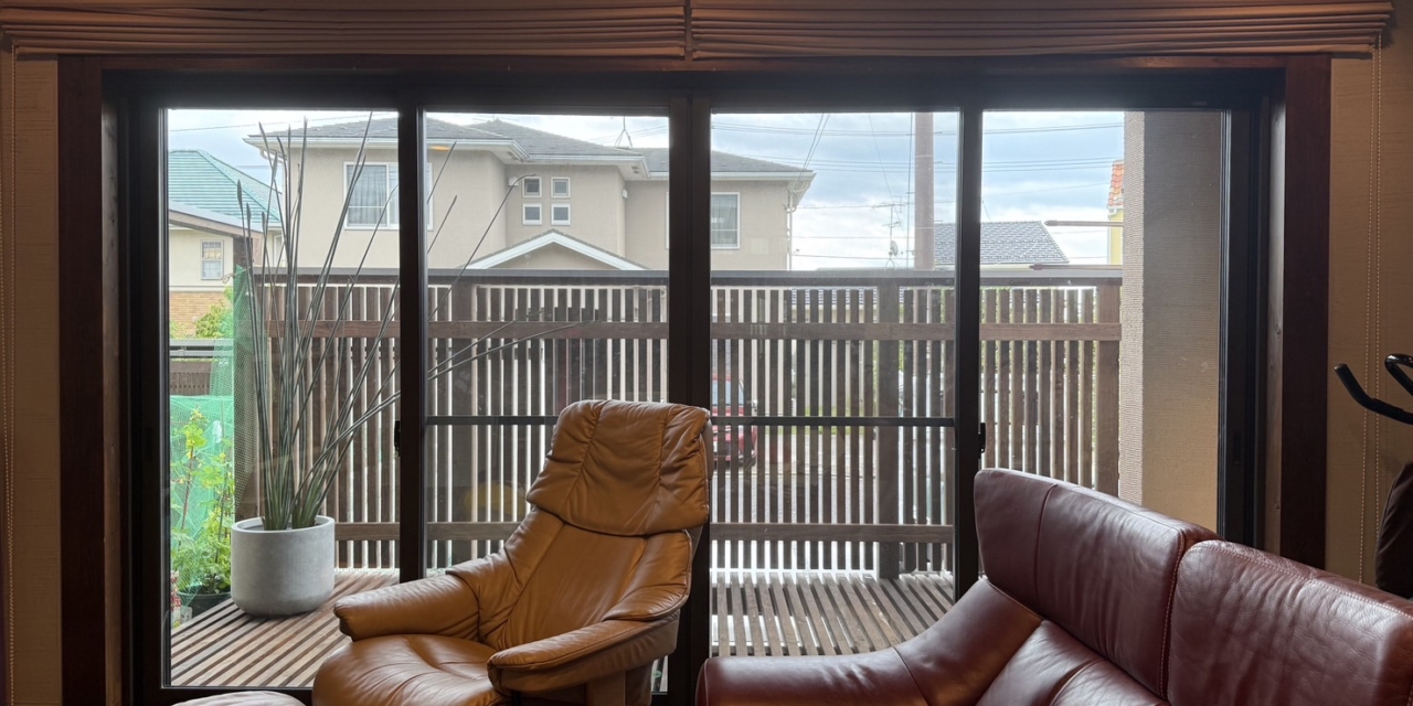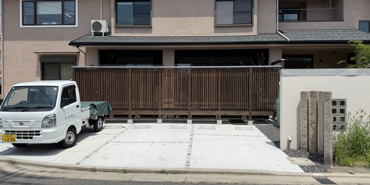 自宅側は庭を殆ど駐車場に転用したので、デッキと格子で結界を設けている。