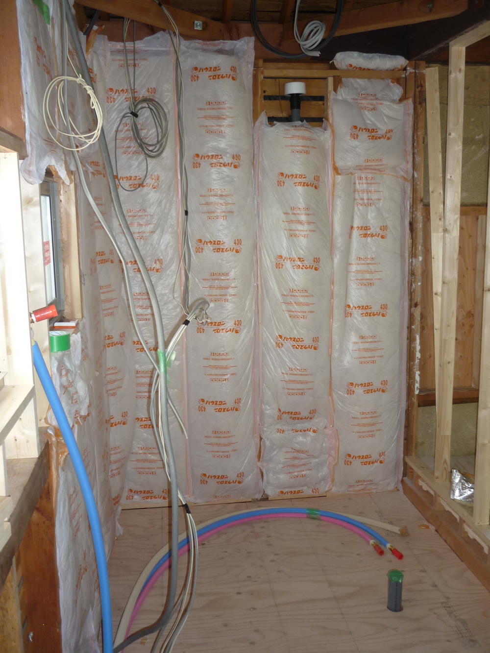 大壁に改装する分、断熱施工はし易く断熱性能の高いリフォームが完成しました。