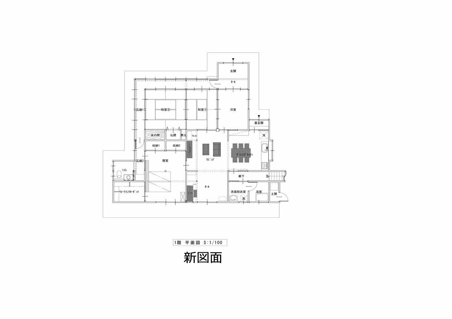 居間として使用されていた和室は、半ば通路のような位置にあり狭かったので、
