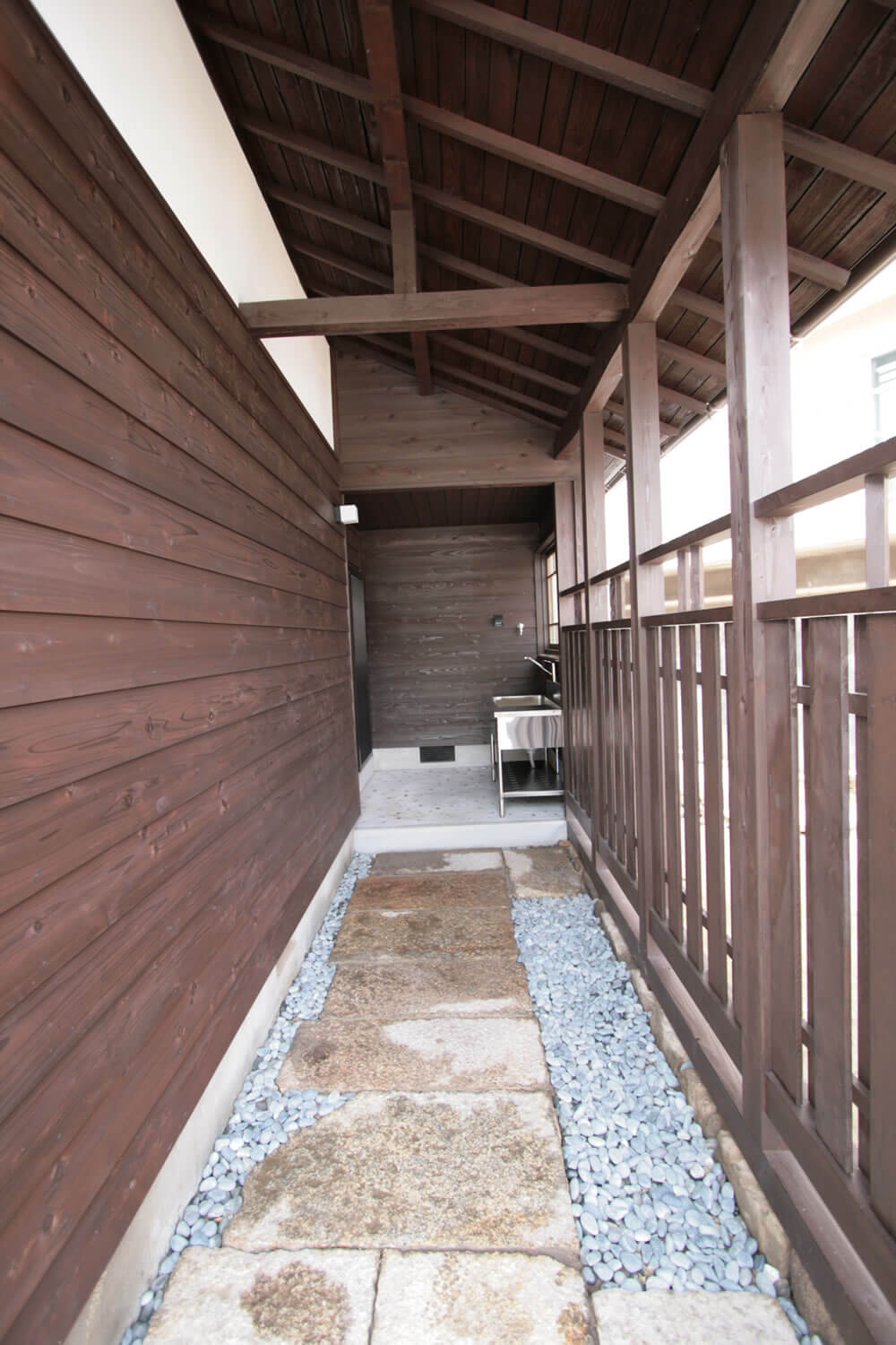 杉の南京下見板貼りや大和塀とし母屋の風合いに調和させました。