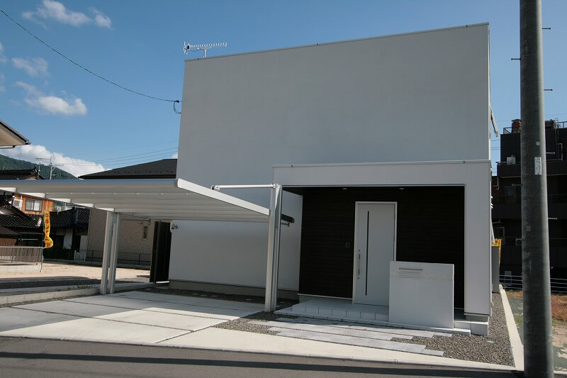 白、黒を基調とした箱のようなイメージの家をご要望されました。