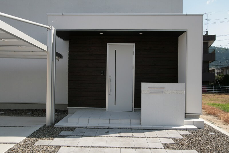 納戸やクローゼット等を北側にまとめる事で、窓の無いシンプルな外観を実現させました。