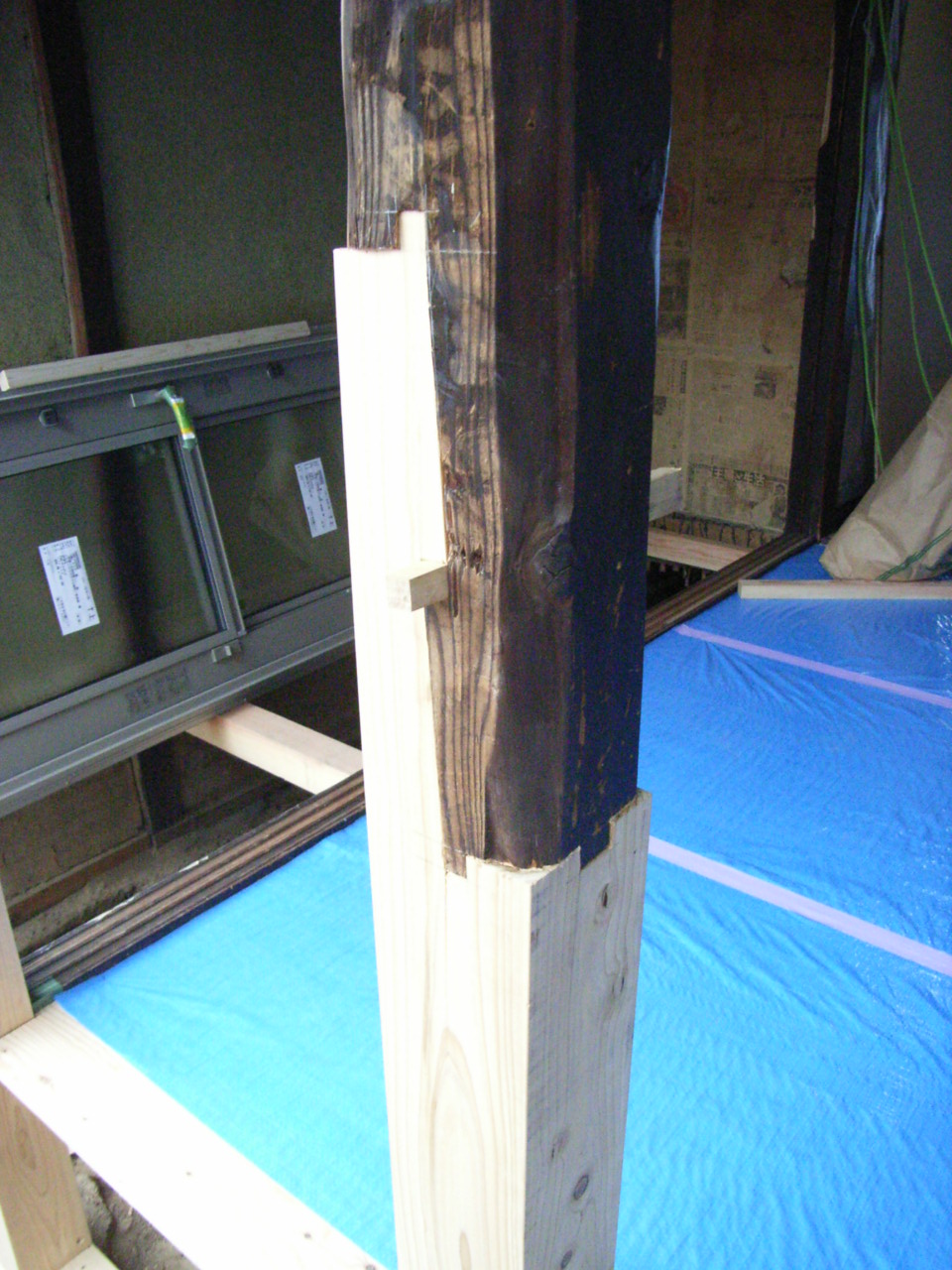 ジャッキアップや金輪継などの大工の技術で補強しています。